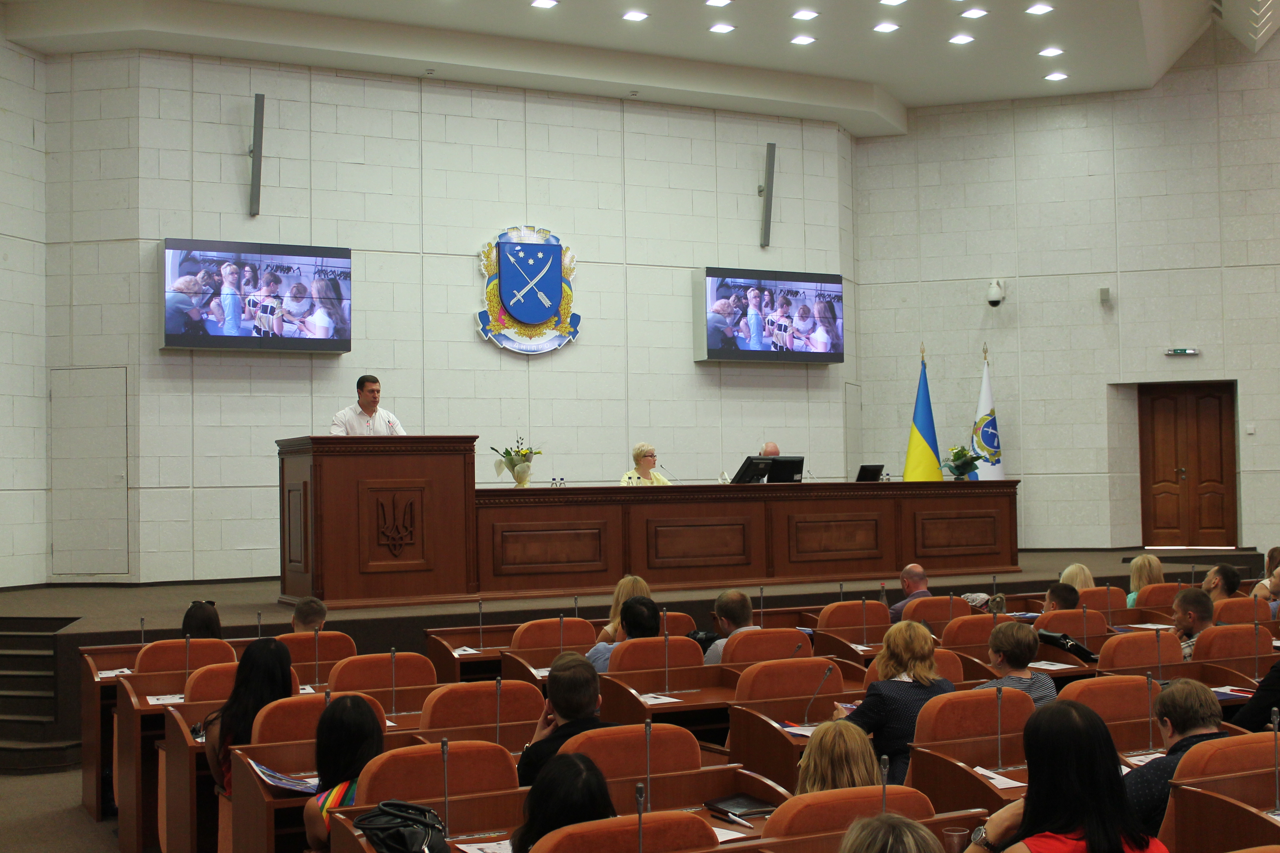 Сессионный зал Днепровского горсовета собрал более 200 человек, среди которых руководство города, представители риэлторского бизнеса, проектировщики, строители, дизайнеры, архитекторы, менеджеры проектов, поставщики товаров и другие.