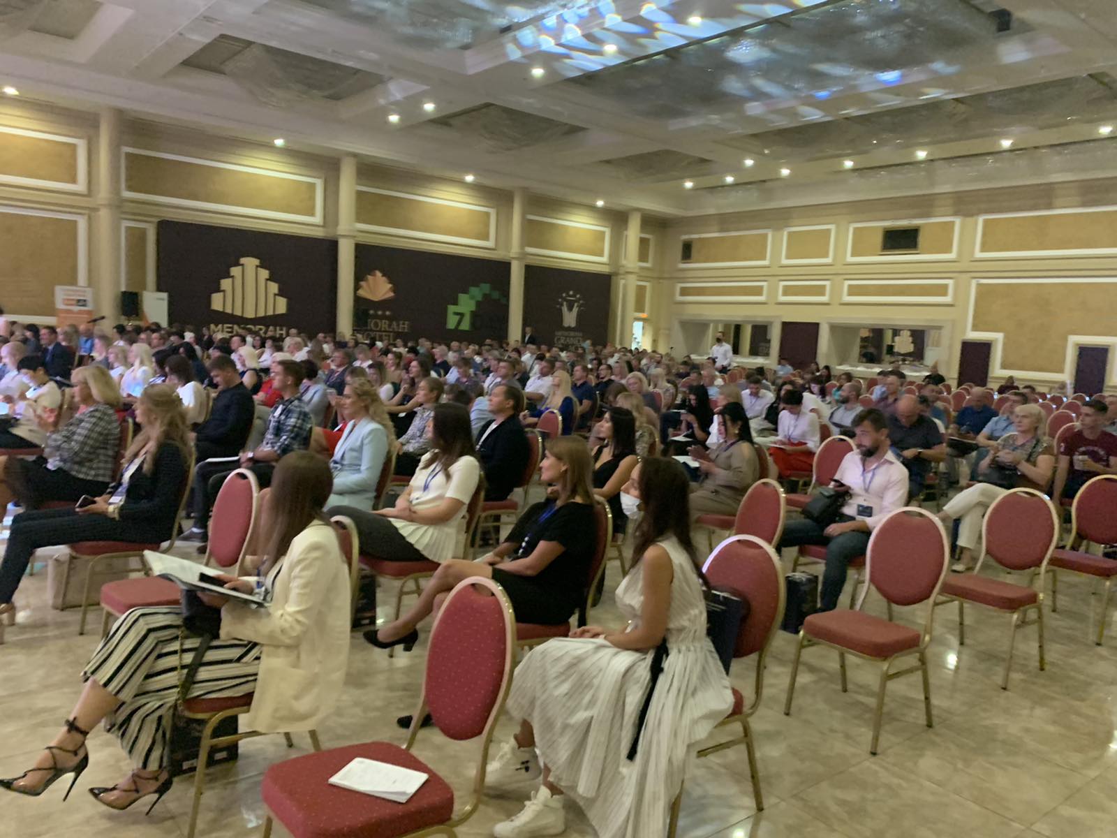 Перший день Міжнародної конференції у Дніпрі завершився вітальним коктейлем. Нагадаємо, що захід приймав Культурно-діловий центр «Менора», один із найбільших та найвідоміших в Україні бізнес-центрів. Тож, вечірня розважальна програма також проводилася тут, у «Гранд-холі» «Менори».