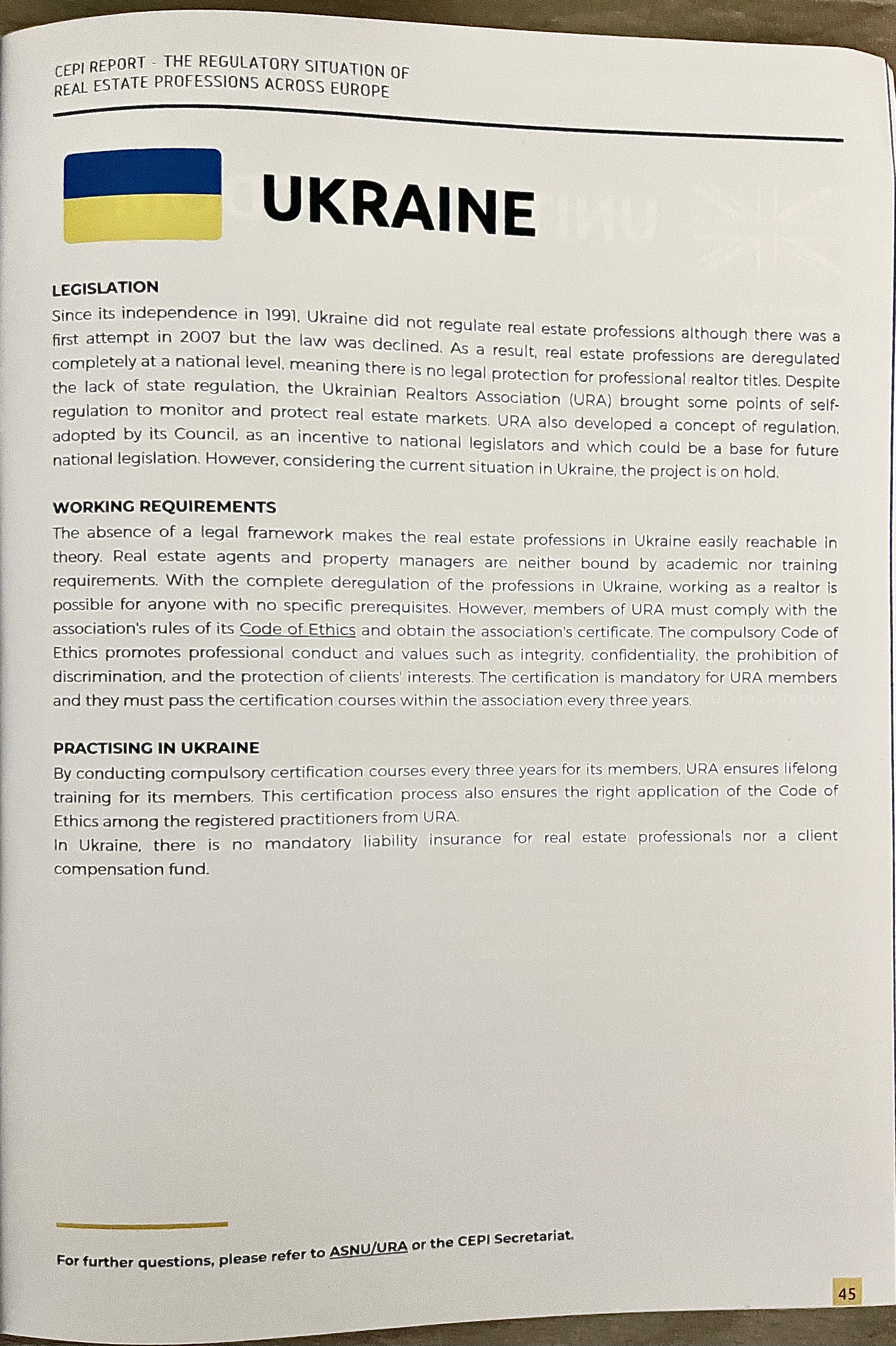 Звіт у журналі CEPI - Європейської асоціації фахівців з нерухомості: регуляторна ситуація в Європі.