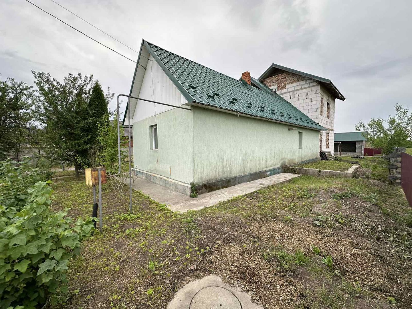 Будинок накритий металочерепицею, є господарські споруди - літня кухня, сарай, гараж, криниця.