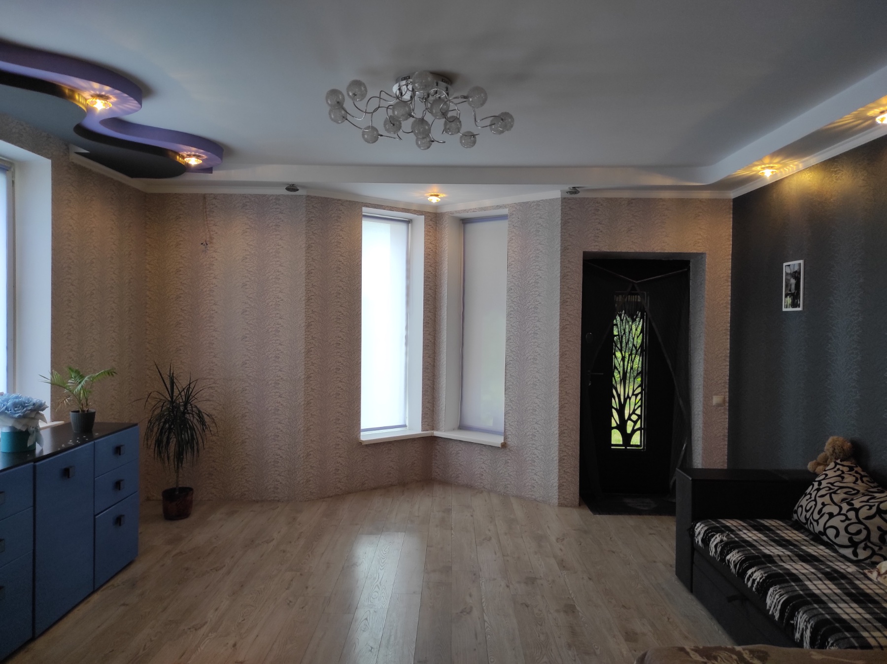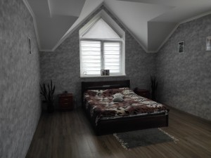 Всі приміщення виконані з використанням якісних матеріалів: підлога встелена ламінатом, що додає тепла та затишку, а стіни пофарбовані та оздоблені сучасними шпалерами.