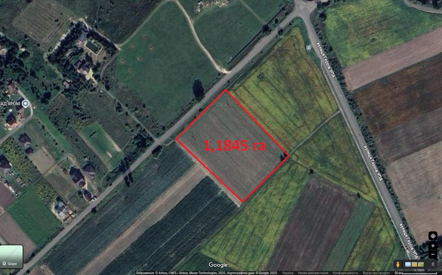 Продам земельну ділянку у с. Жидичин, загальною площею 1,1845 га