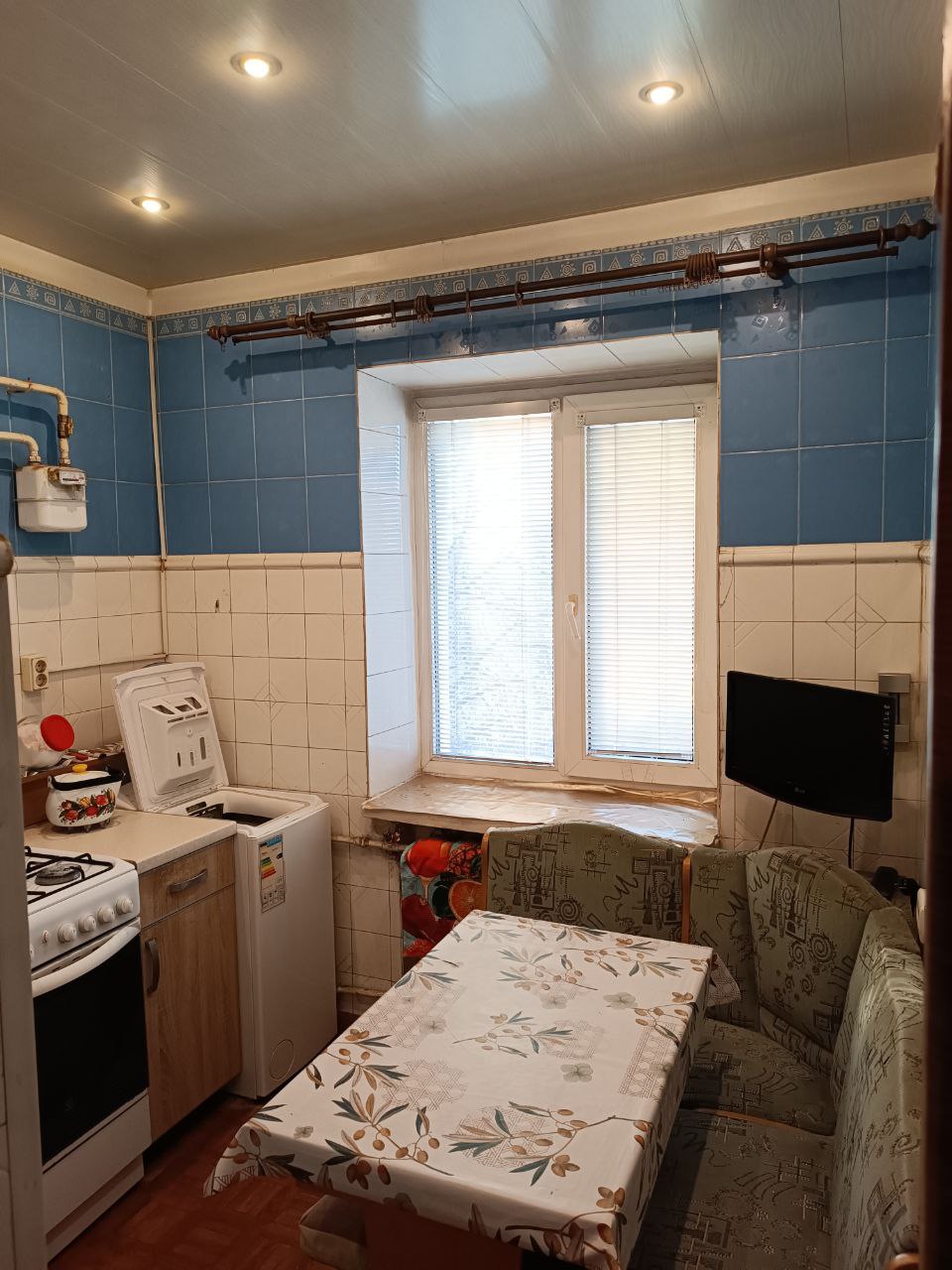 Квартира с косметическим ремонтом, установлены счётчики на воду, поменяны окна, батареи. Есть вся необходимая мебель и техника, посуда.