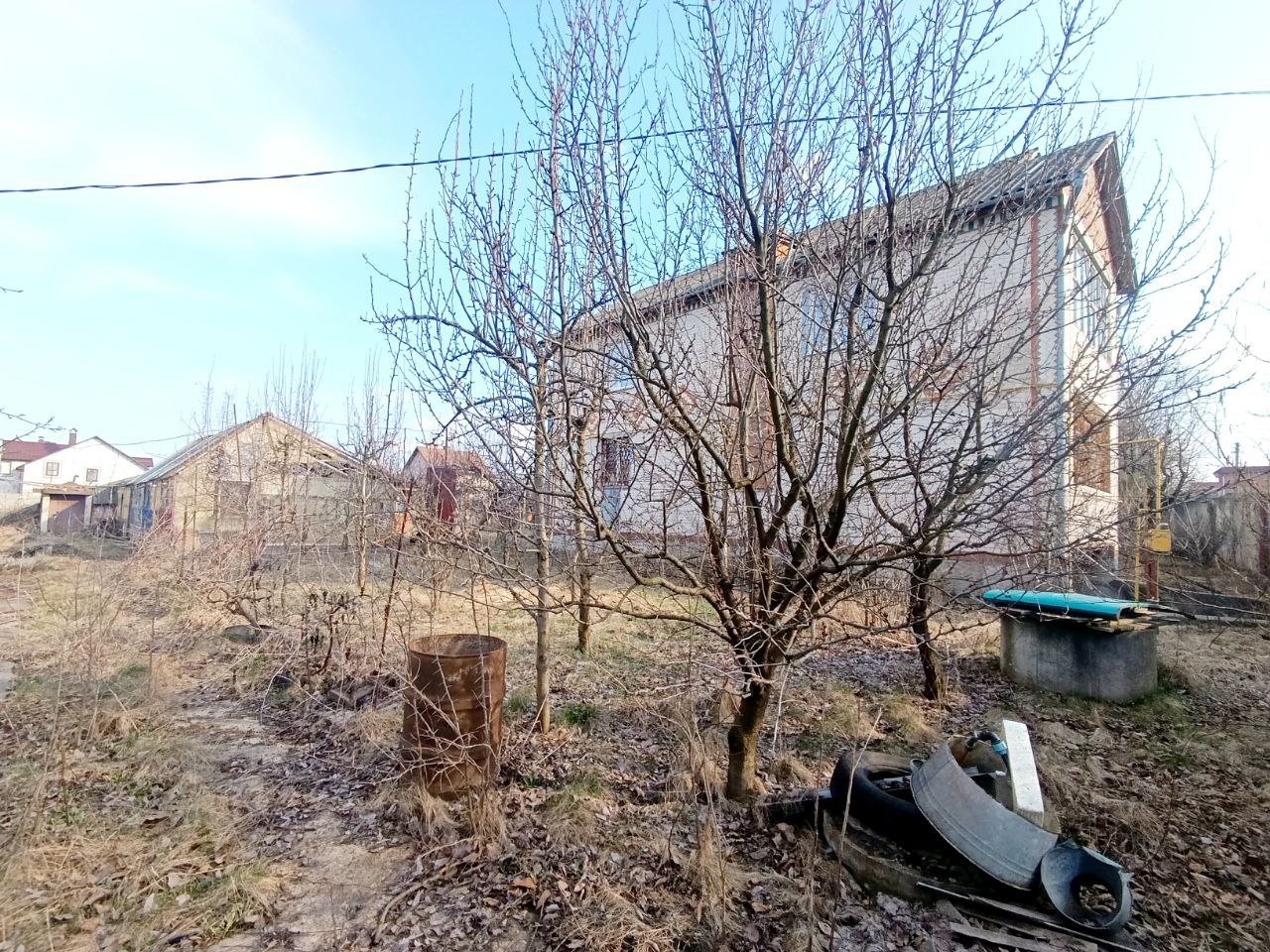 На ділянці є басейн, побудована не велика сауна, альтанка і теплиця. Стежки з тротуарної плитки і бетону. Сад з фруктових плодовитих дерев.