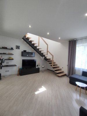 Чудовий просторий будинок має 2 поверхи : на першому санвузол, кімната, кухня -вітальня, комора. На другому 3 кімнати і санвузол. Велике просторе подвір'я, з дизайном, дитячий ігровим будиночком та зоною барбекю. Меблі та техніка залишаються по домовленості.