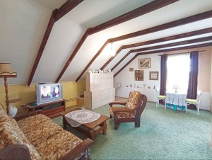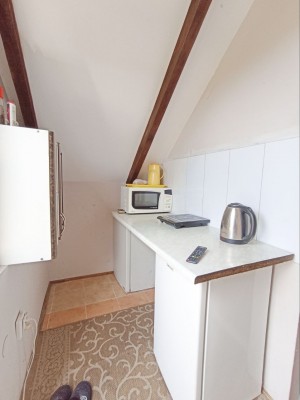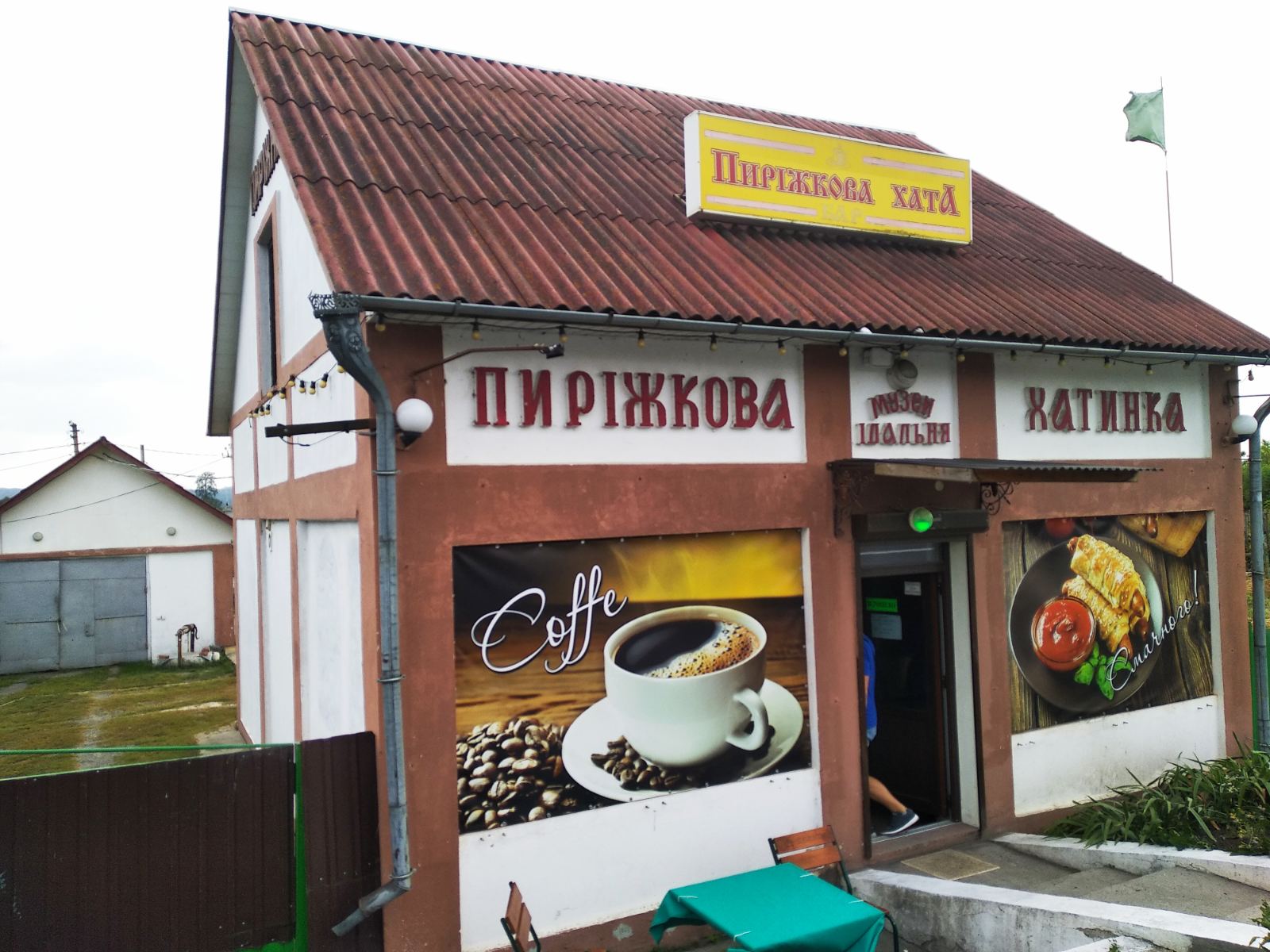 Складається з кафе-магазину "Пиріжкова хата" (54м2) який можливо переробити в житлову площу: гостинну кімнату з каміном і кухню - на першому поверсі, квартири на другому поверсі (39м2) з пічним опаленням (дуже економним), які легко об'єднуються в одну загальну житлову площу (є можливість зробити всередині сходи на другий поверх).