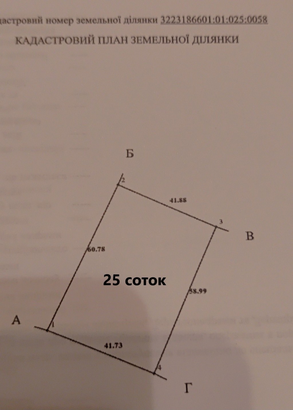 Кадастровий номер 3223186601:01:025:0058