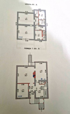 1 поверх- кабінет, вітальня 30м.кв., кухня23м.кв., туалет.