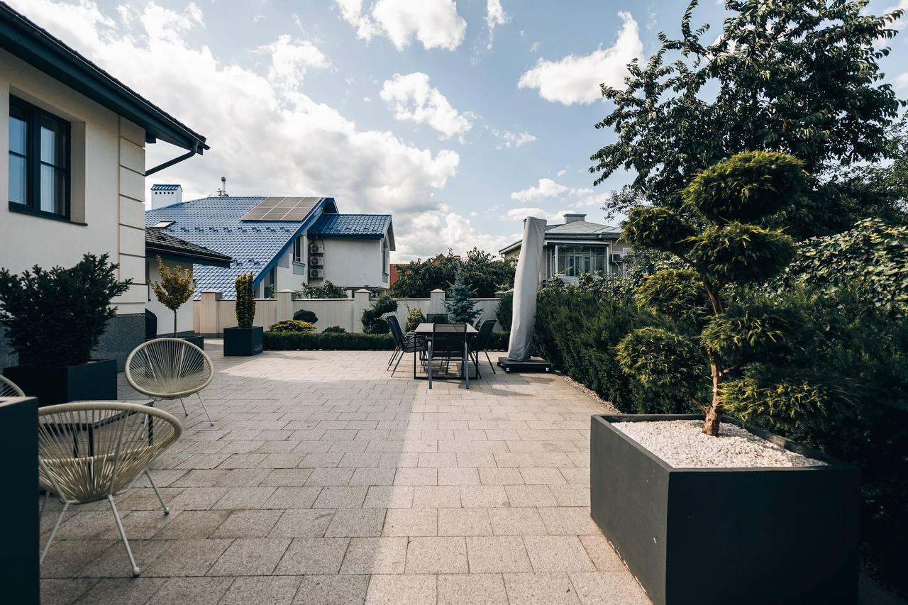 Будинок абсолютно новий, з дизайнерським ремонтом - ніхто ще не проживав. Оснащений власною сонячною електростанцією, яка повністю забезпечує електроенергією весь будинок. Кожен сантиметр простору продуманий до деталей - від ландшафтного дизайну у дворі до меблів та декору всередині.