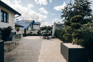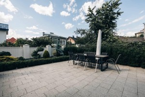 У будинку є просторий гараж на 3 авто, спортзал, пральня, пивниця та котельня. Вуличне оздоблення виконане з граніту, зона відпочинку обладнана стильними меблями та пересувним газовим грилем.