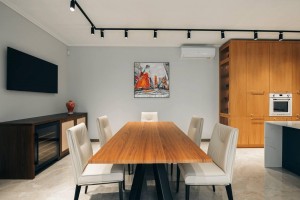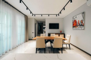 У вітальні - 85-дюймовий телевізор зі стерео системою Devialet. Паркетна дерев'яна підлога, авторські картини, дизайнерські вази та декор - все входить у вартість. Будинок повністю готовий до заселення без жодних компромісів.