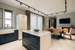 Всередині - лише найкраще: італійські меблі, техніка Smeg, сантехніка Axor та Villeroy\&Boch;, винний холодильник, сучасна система опалення. Окремий акцент - камін на дровах із системою розведення тепла по всіх кімнатах, що створює особливу атмосферу затишку та комфорту.