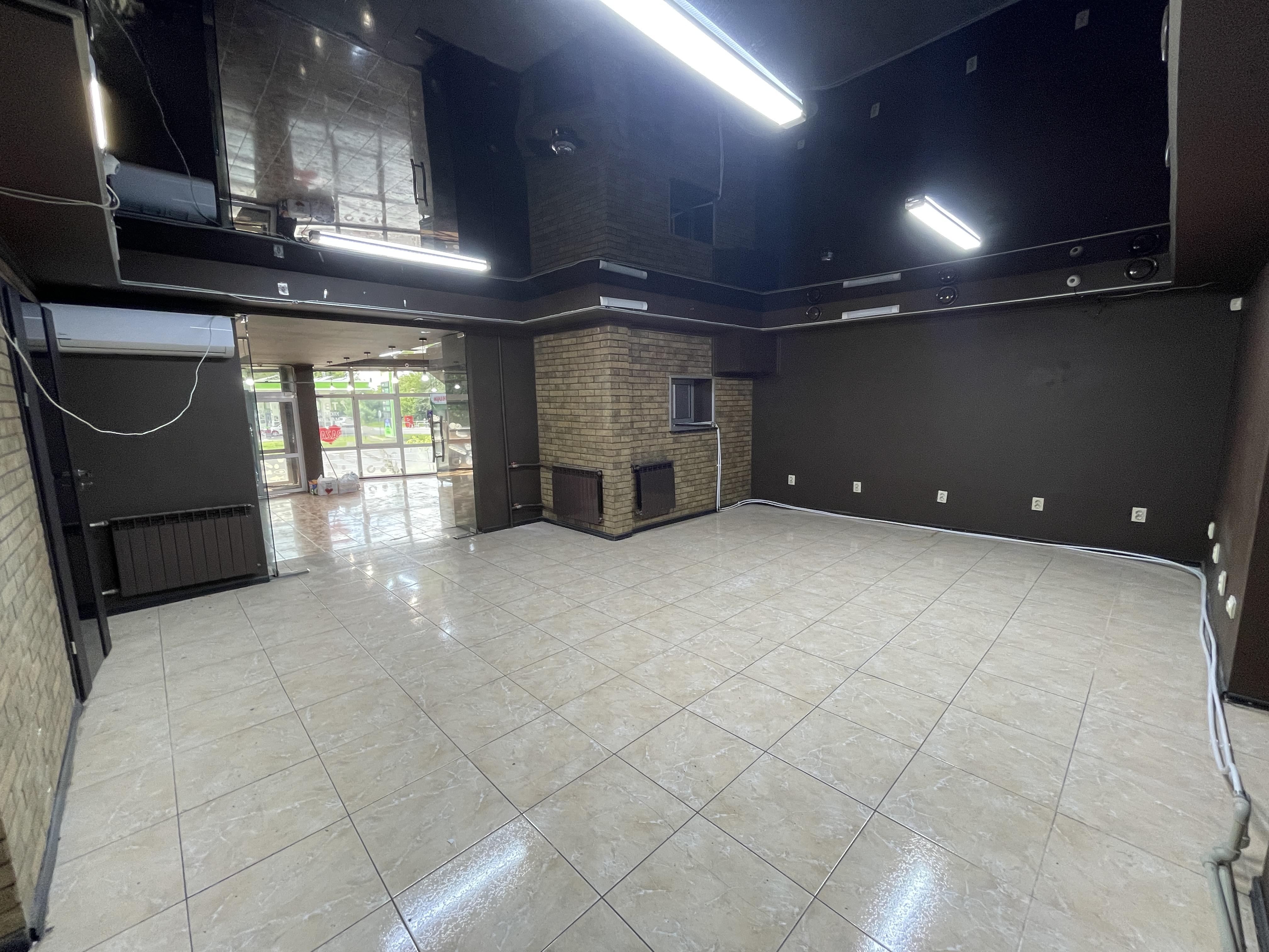Комунікації: теплі стіни, централізоване опалення та водопостачання (лічильники), е-потіжність 15 кВт., інтернет, система відеонагляду (9 камер), охоронна сигналізація, пожежна охорона, на вхідних дверях теплова завіса, 2 кондиціонери, приточно-витяжна система кондиціонування (з можливістю нагріву повітря).