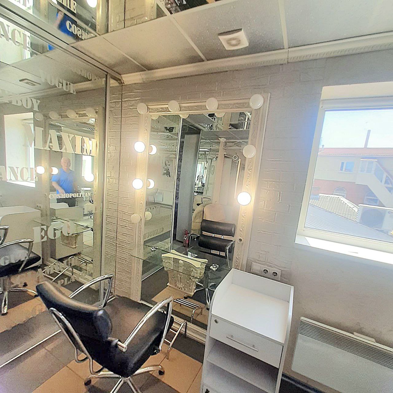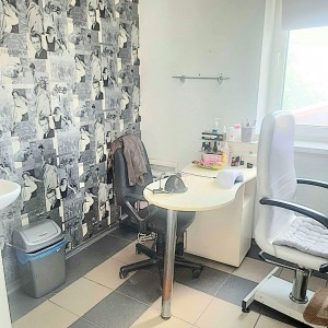 ДРУГИЙ поверх - площа 47,7 м2. Може здаватися з обладнанням. Три перукарських крісла, крісло для миття волосся, два робочих місця для манікюру, крісло для педікюру ,вбудовані шафи, дивани. Може розглядатися під любий різновид діяльності без обладнання. Окремо є два виводи на воду та каналізацію Опалення електричне, є кондиціонер, також є можливість обігріву газовим котлом, в приміщенні обладнана тепла підлога. Підлога плитка, стеля підвісна, стіни пофарбовані. Лоджія з панорамними вікнами на вул.Грушевського.