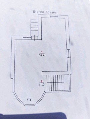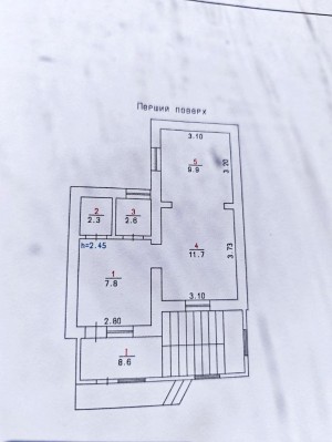 ПЕРШИЙ поверх - площа 42,9 м2- торговий зал, офісне приміщення, санвузол та побутові приміщення, в яких розташовані котел та бойлер. Підходить під торговельну та сферу обслуговування.