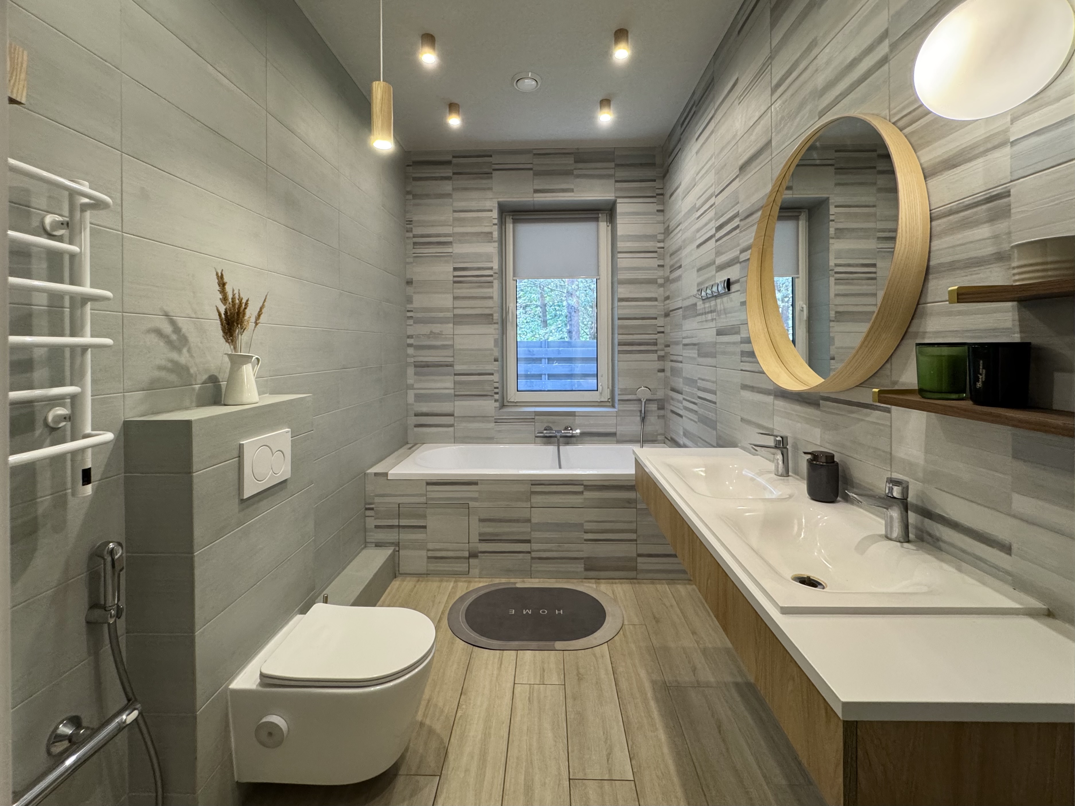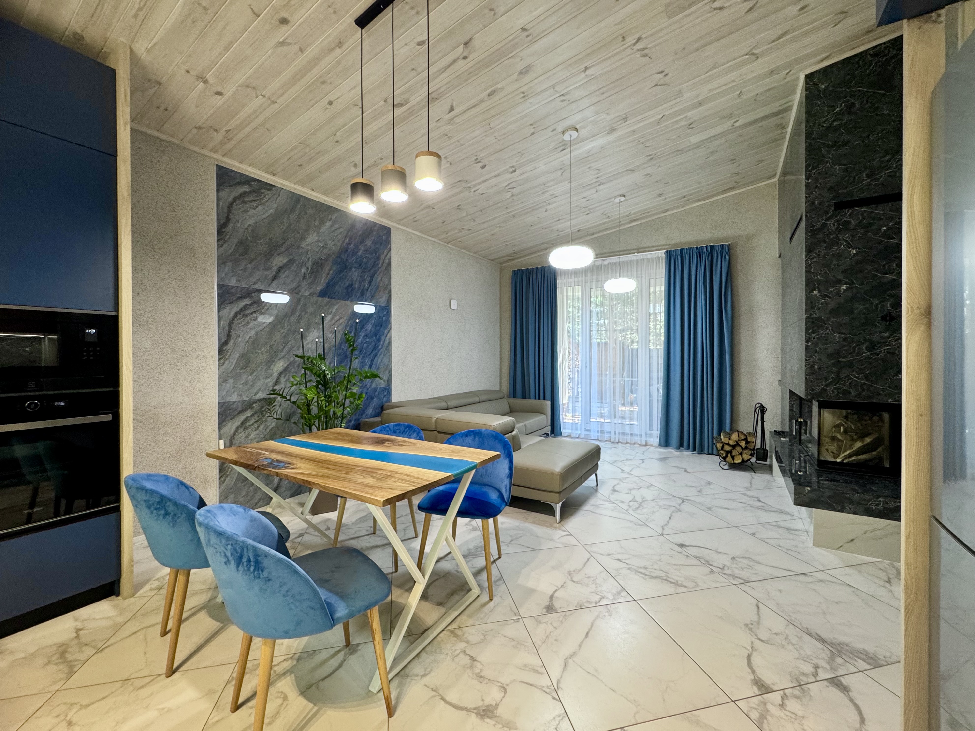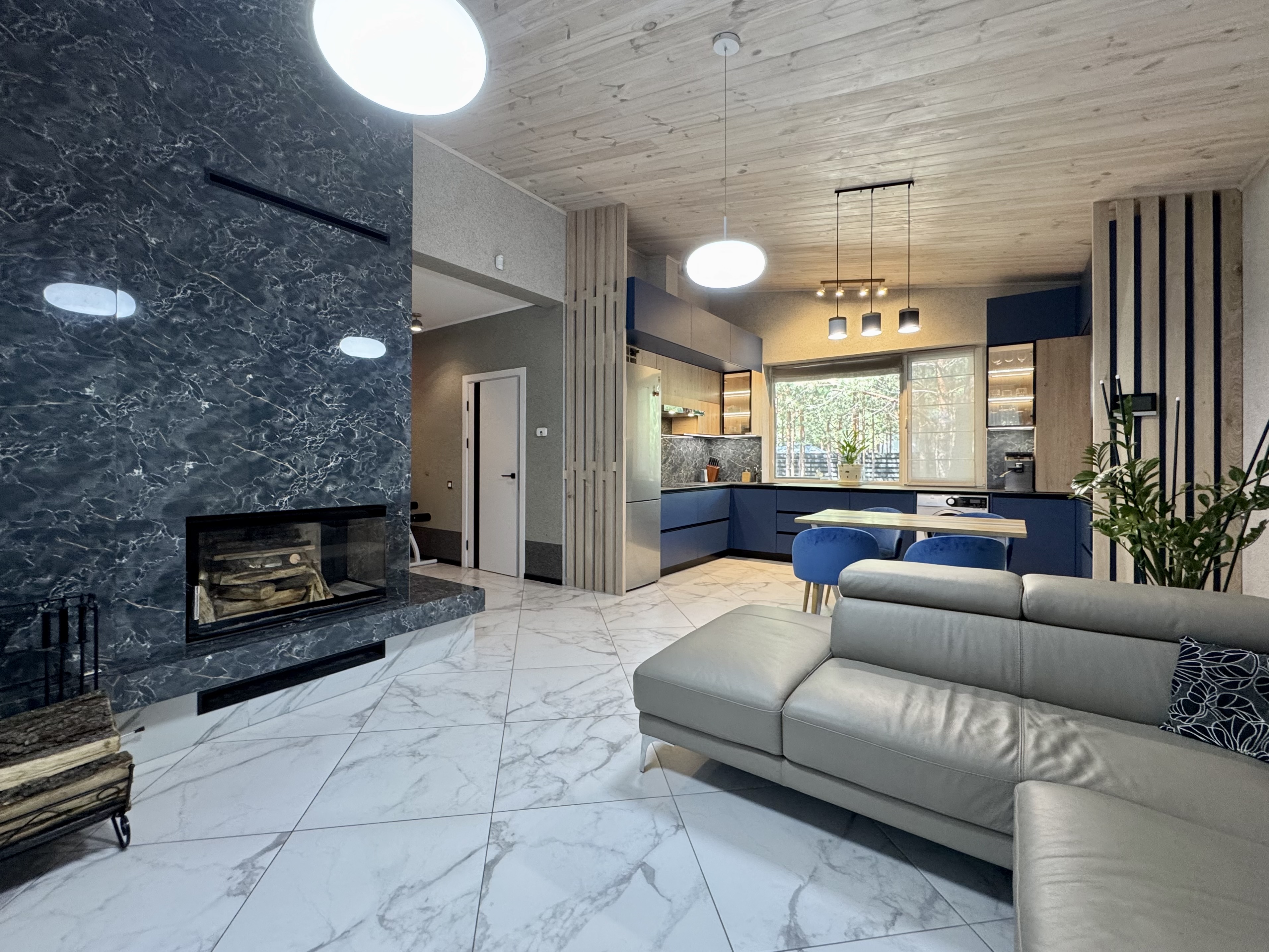 12 зон теплої водяної підлоги + електричний котел 9 кВт + польський камін із розведенням тепла по кімнатах. В будинку завжди буде затишно.