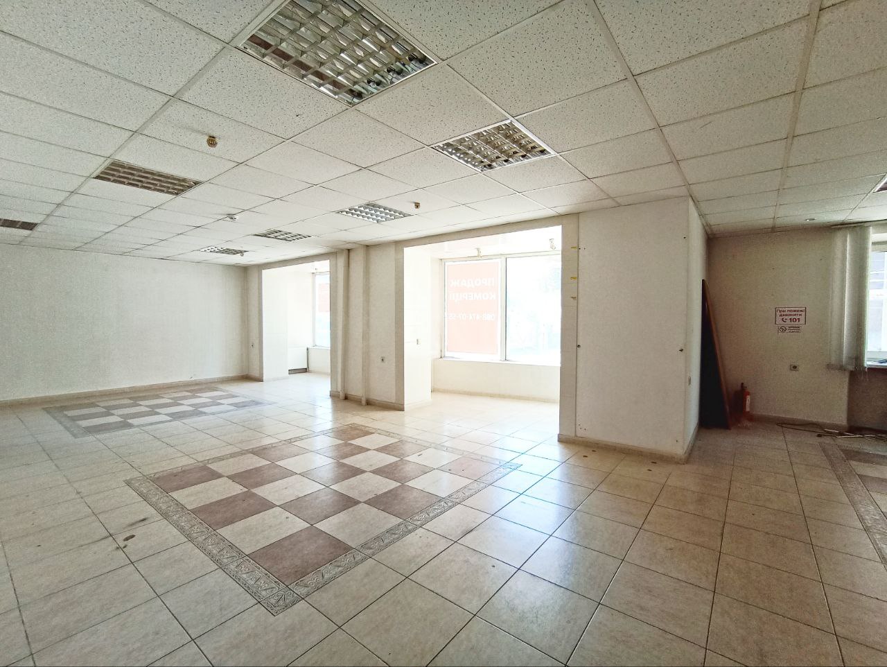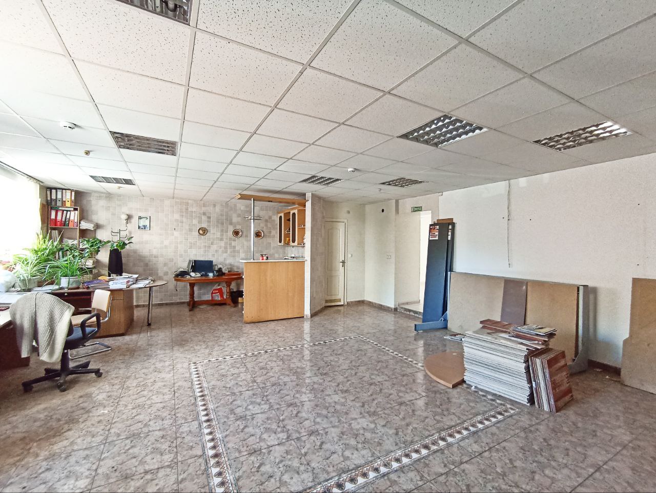 На все лічильники (газ, вода, світло). Ремонт: стіни - пофарбовані, стеля - армстронг, підлога - плитка. Вікна - м/п. Охоронна та пожежна сигналізація.