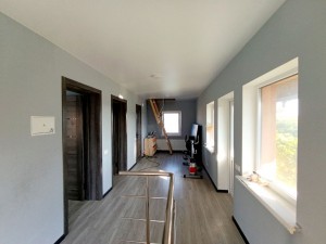 Готовий жилий цегляний будинок (1-й поверх цегла, 2-й пеноблок) з зовнішнім утепленням (пінопласт 10 см.) і панельним перекриттям, дах балки утеплений мін. вата, покрівля – металочерепиця. Фундамент блочний з двох блоків по 40 см кожний, зроблена гідроізоляція. В будинку робився якісний ремонт, робився на совість, для себе! Ремонт: підлога – керамічна плитка і ламінат, стіні – фарбовані, стеля – натяжна. Все як на Фото!