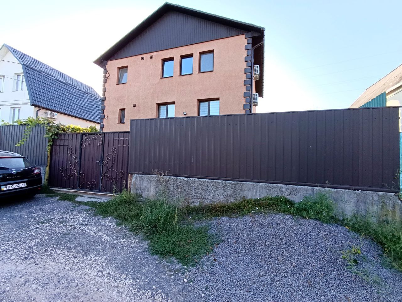 На подвір’ї стає два авто, по периметру ділянки відео нагляд і паркан, вулиця повність заселена.