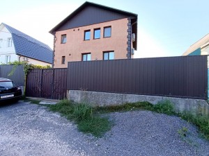 Цоколь: 49 м2 – великий гараж на 2 авто (погріб під гаражем), 2.5 м2 – санвузол, і залишкова площа хоз. приміщення (обладнання і підключення сонячних панелей, батарея, інвертор, фільтрація води, котли, бойлер, … ).