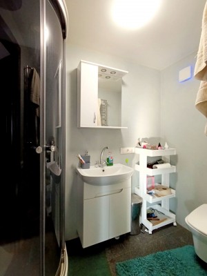 На даху встановлені сонячні панелі на 10 к.Вт, гібрідний інвертор на 20 к.Вт. і батарея ( максим. видачі батареї 15 к.Вт) – що робить будинок не тільки автономним по електриці, ще дає змогу заробити на продаючи електрику в мережу +/- 13-14тис.грн на місяць в сонячні дні. По комунікаціям: Вода своя – криниця (8 метрів) і свердловина (40 метрів); Каналізація – септик 2х камерний, 3 куба залізобетонний (моноліт) і 5 кубів бетоні кільця; Газ – в будинку; Електрика – 3 фази 30 к.Вт. (з легкістю можна одночасно заряджати 2 електрокара). Опалення: газове (двоконтурний котел) і електричне (електричний котел 17 к.Вт.) котли запрограмовані працювати по системі газ вдень, вночі електро, налаштування можна змінити, перший поверх тепла підлога, 2-й поверх радіатори. На гарячу воду є ще бойлер 200 л.. Кондиціонери 2 шт. Наявність розетки для заряду електромобіля.