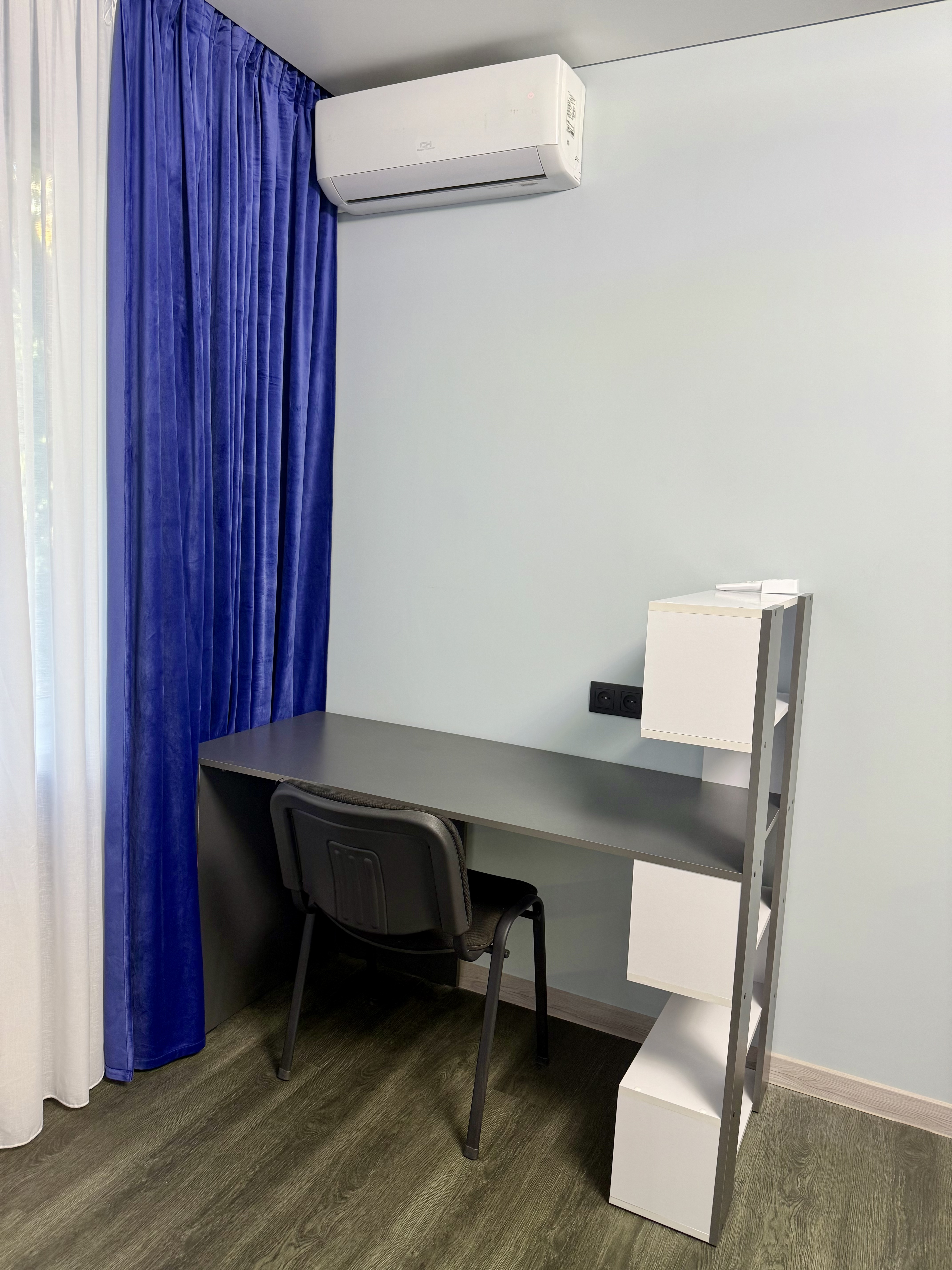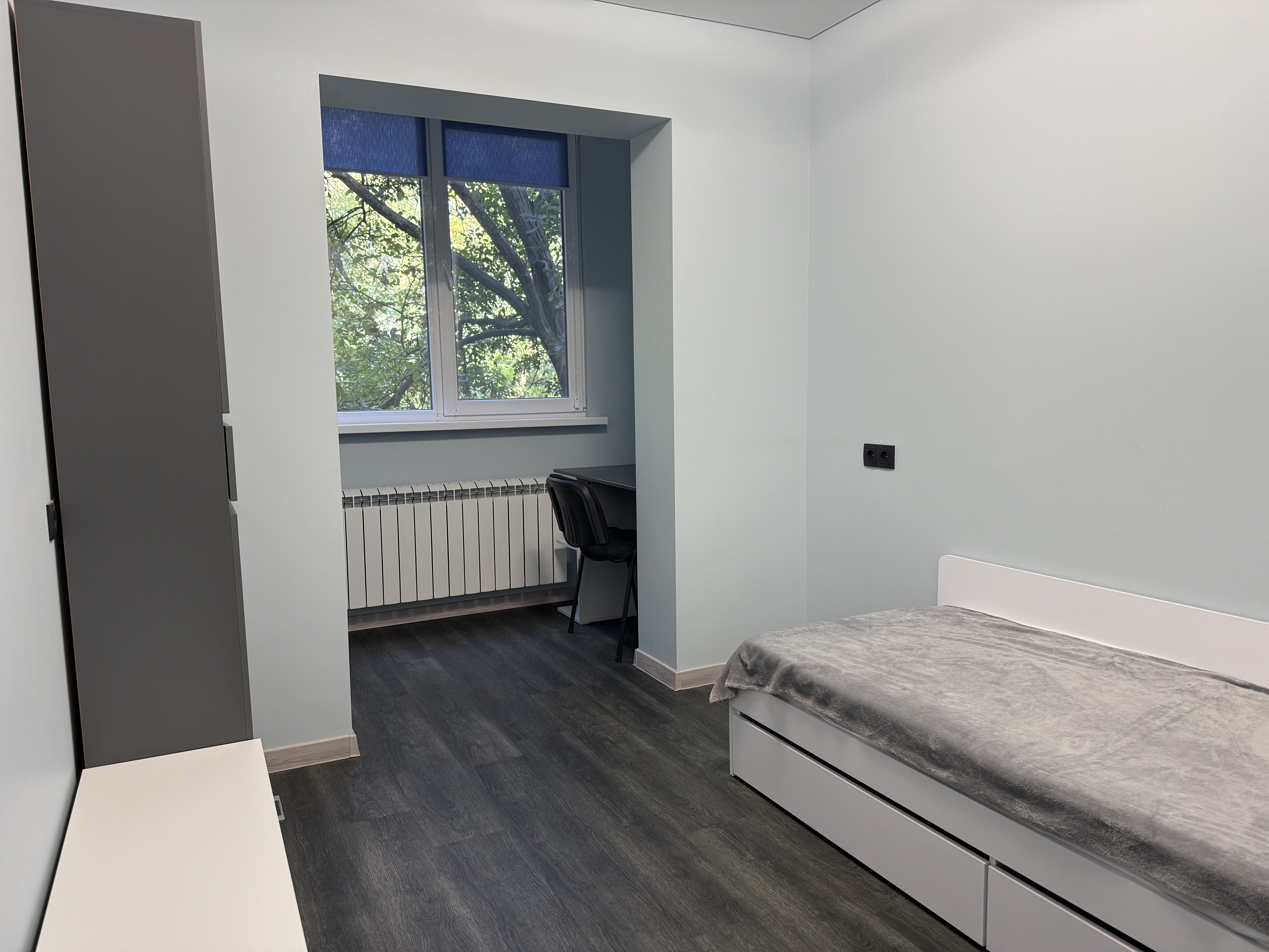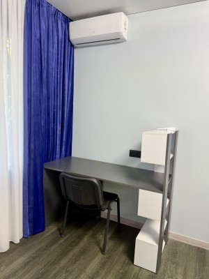 • Планування: кухня, вітальня з розкладним диваном та дві окремі спальні. Є шафи та письмові столи.