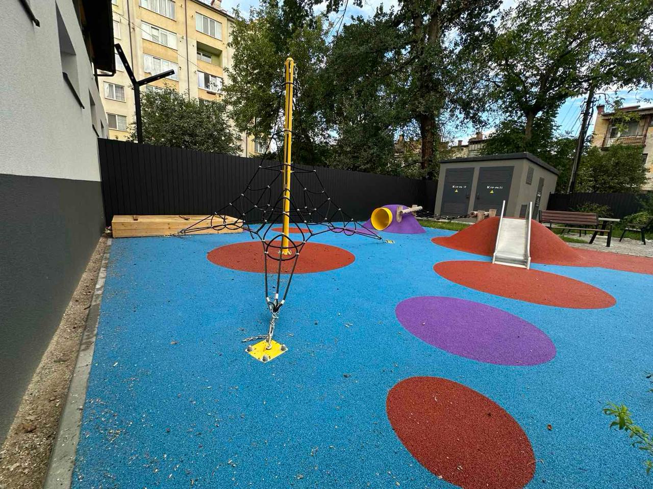 * сучасний дитячий майданчик та облаштована територія