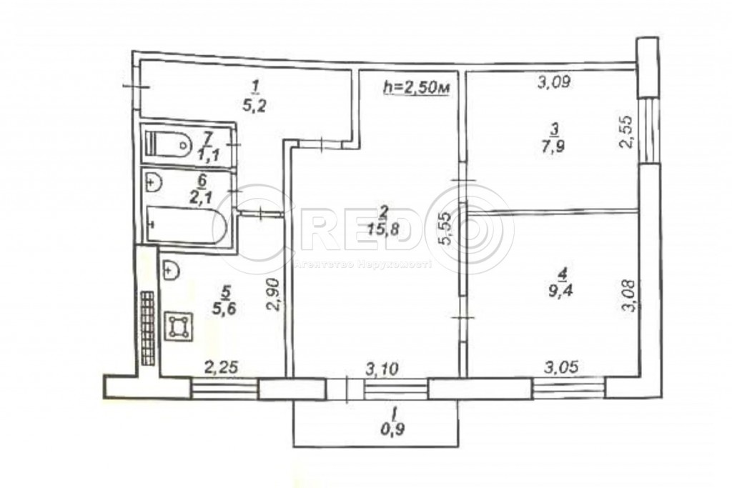 - Загальна площа 50,3кв.м.,