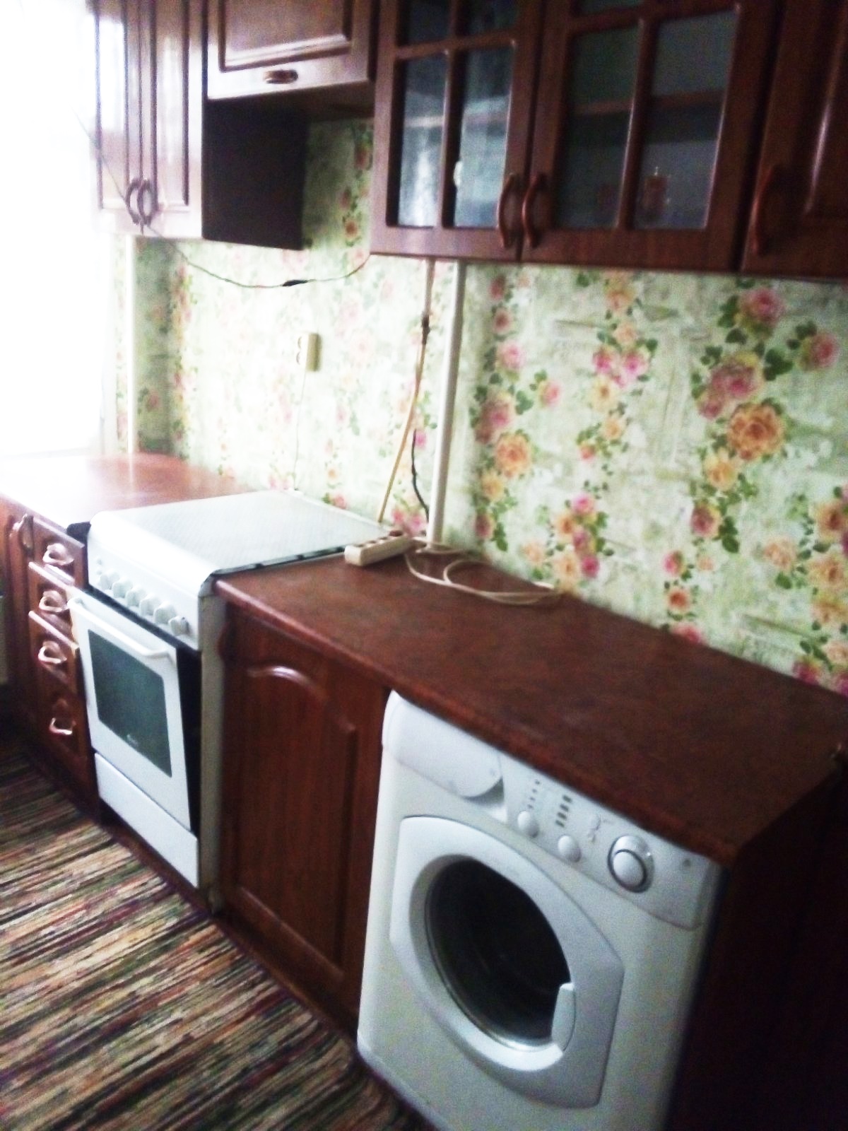 Квартира світла,не кутова,вікна квартири виходять на схід захід дуже тепла,повністю обставлена,є необхідні меблі- шафа,2 спальний розкладний диван в гарному стані,не продавлений,чистий,вбудовані кухонні меблі,стіл,стільці) та техніка (холодільник,пральна машина)