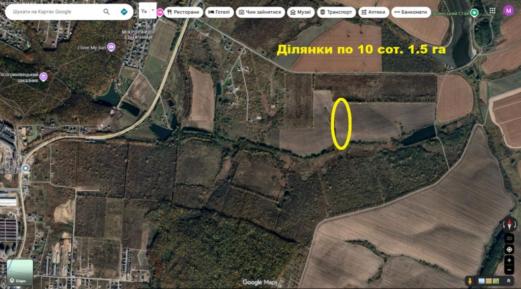 Продаж ділянок по 10 сот. (1.5 га) за районом Європейський-2. Від круга Темпа в сторону Старокостянтинова до 10 хв на авто 5.9 км.. Поряд забудувалося КМ Barcelona. Багато ділянок поділені по 10 сот.
