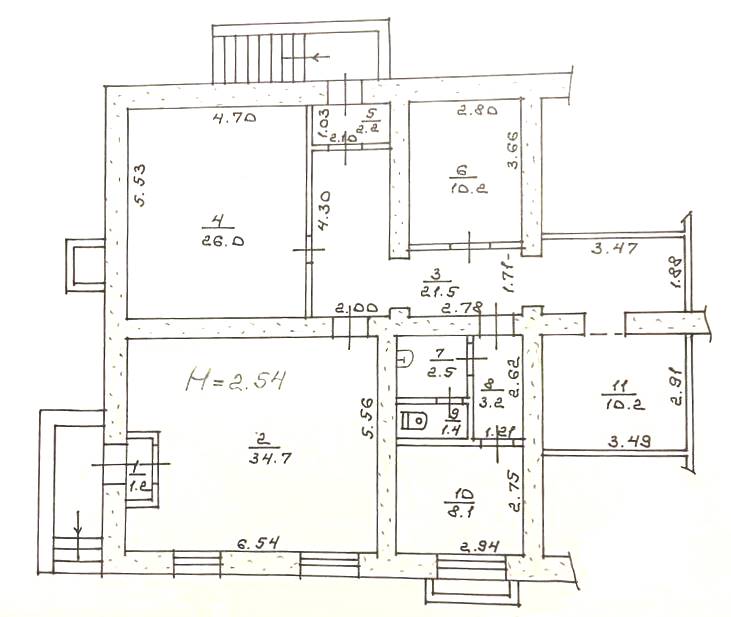 - Висота стелі Н- 2.54м.