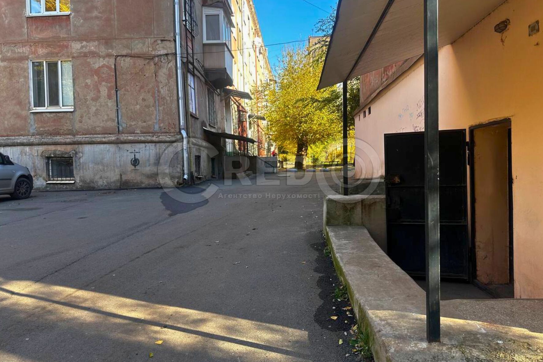 Вбудоване в цокольний поверх 5-ти поверхового будинку. Кутове.