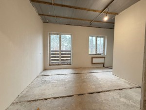+ стіни - чистова штукатурка з використанням склополотна для міцності і запобігання тріщин, також зроблена шумоізоляція;