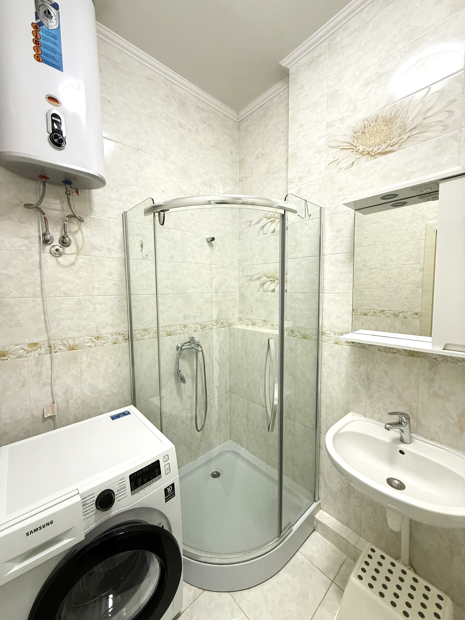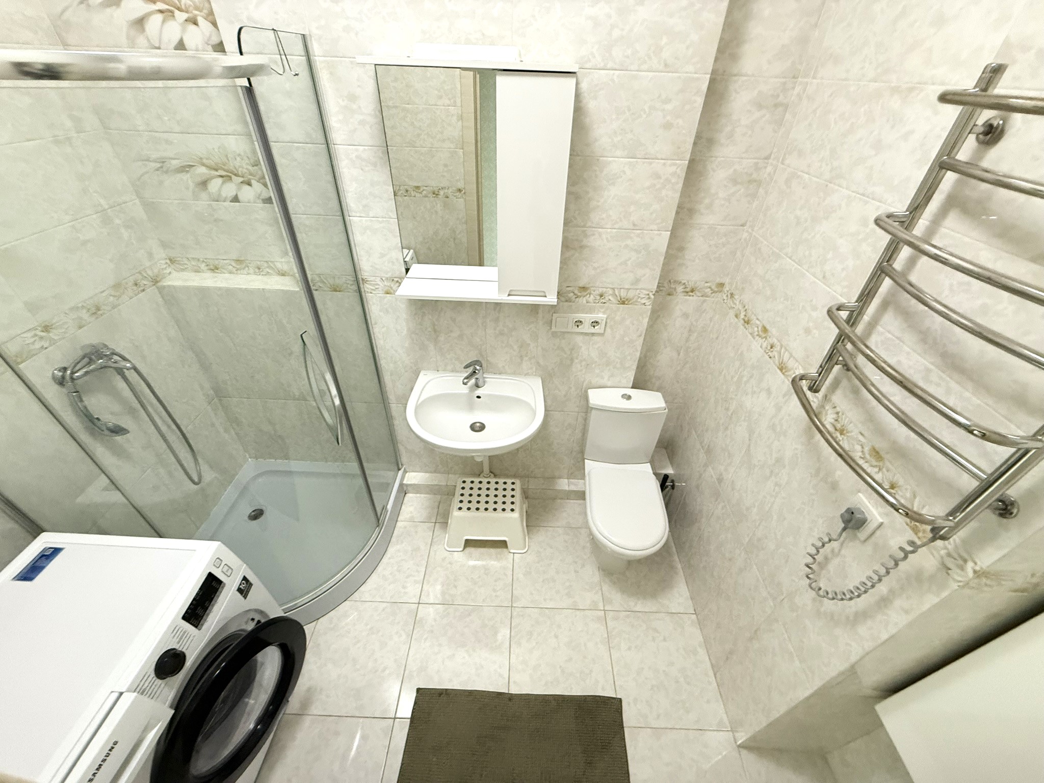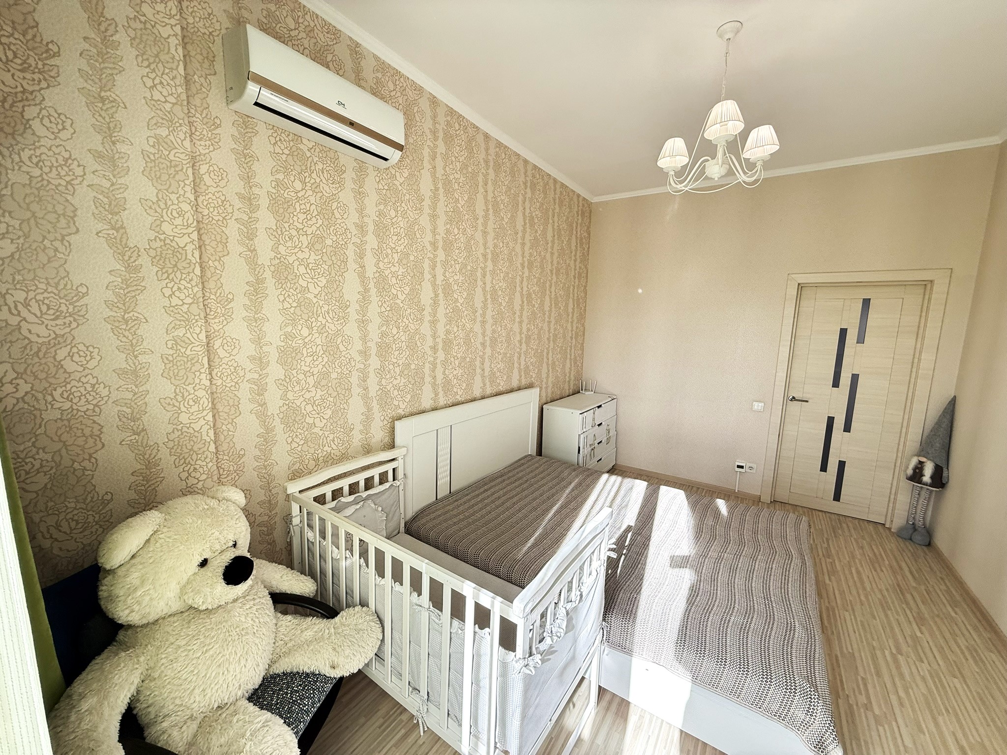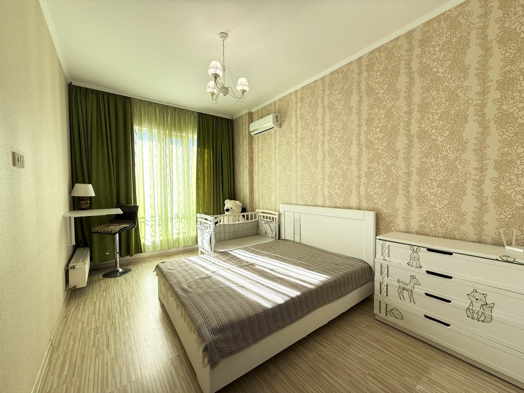 Для комфортного проживання є функціональні меблі: двоспальне ліжко, ортопедичний матрац, дитяче лжко та побутова техніка: холодильник, пральна машина, посудомийна машина, мікрохвильова піч, електричний чайник, кавова машина, духова шафа, електрична поверхня, кондиціонер, бойлер
