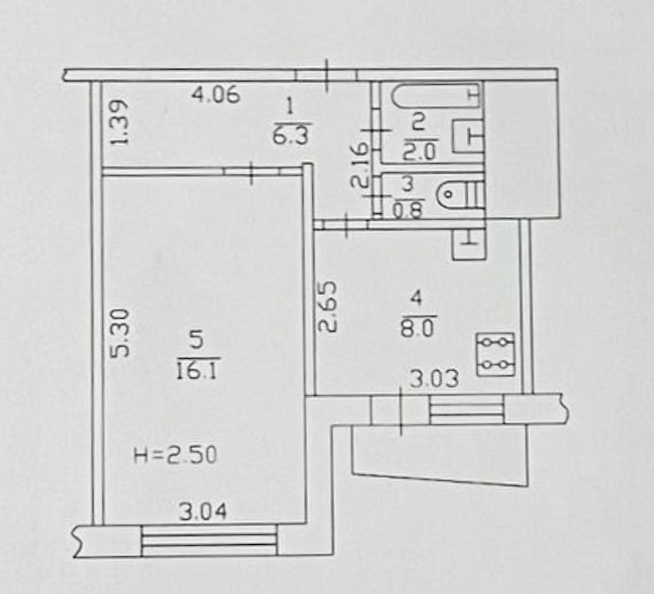 Площа 35/16,1/8 кв.м., 16/16 поверх.