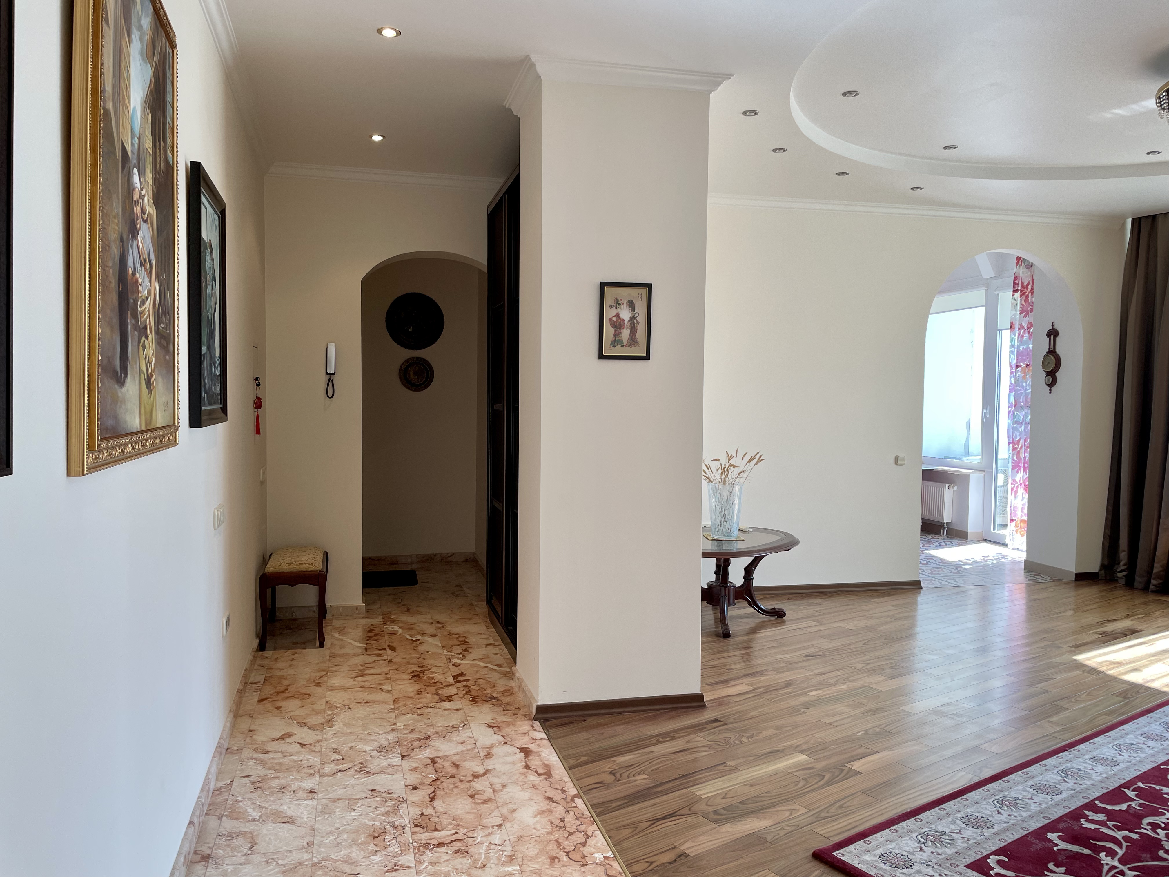Квартира розташована на 11 поверсі, двостороння, з панорамним видом на море. Загальна площа — 131 м². Два балкони. Встановлений лічильник на тепло. Проведений оптоволоконний інтернет. Є можливість придбання паркінгу за окрему плату.