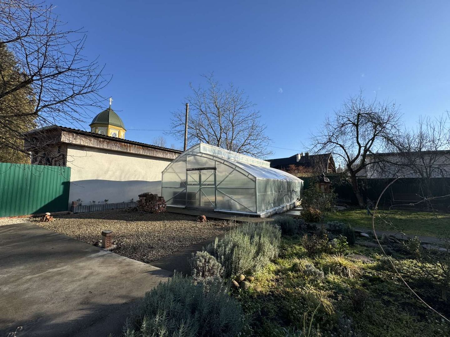 На подвір'ї є окремостоячий 2-поверховий гараж, будівля з відпочинковою і мангальною зоною, теплиця, альтанка.