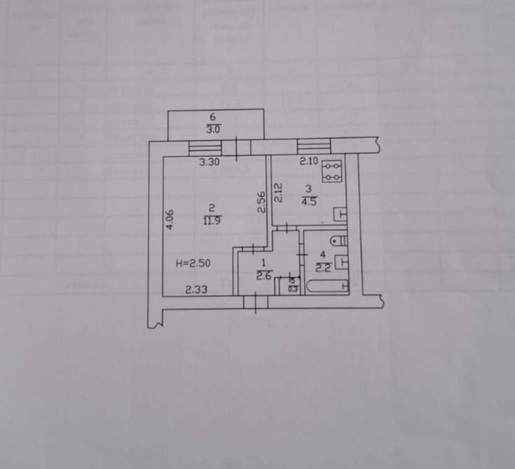 Загальна площа 22,4 м. кв., житлова – 11,9 м. кв., площа кухні – 4,5 м.кв. Балкон, колонка.