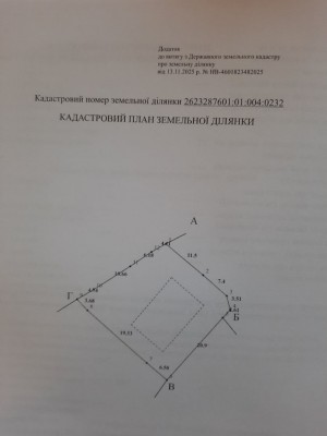 Загальна площа - 0,2162 га, для будівництва та обслуговування житлового будинку.
