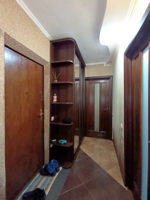Панель (утеплена зовні), є тех. поверх теж утеплений. Не кутова. Вікна виходять не на дорогу. Південна сторона. Розвинена інфраструктура – школа, садочок, магазини (поруч два великих супермаркети і безліч маленьких магазинів), зупинка громадського транспорту, лікарня, пошта – усе під рукою. Квартира з хорошим ремонтом, робили для себе (все як на фото), квартира тепла і затишна з утепленою лоджією. Туалет з ванною об’єднали для збільшення простору. Кондиціонер. Висота стелі h=2.50 м.. Опалення – централізоване. На все лічильники. Зроблений капітальний ремонт в квартирі і даху з гарантією (утеплення даху): поміняна вся електропроводка на мідну; заміна труб; стіни – фарбовані, шпалери, декоративний камінь; підлога – керамічна плитка, ламінат, стеля – штукатурка, в одній кімнаті гіпсокартон, вікна – металопластик, міжкімнатні двері якісні, вхідні – якісні броньовані. В одній кімнаті зроблена в стелі led-підсвітка. LED-підсвітка робочої зони на кухні. Зроблений капітальний ремонт в санвузлі (встановлений якісний душовий бокс-джакузі). В квартирі залишається майже все: всі вмонтовані меблі, вся техніка (холодильник, пральна машина, душовий бокс, кондиціонер, …) окрім – духової шафи, микрохвильовки, кавової машини і телевізорів. Двір спокійний і затишний. Пропозиція від представника власника. Без комісії для покупця. Показ за попередньою домовленістю.