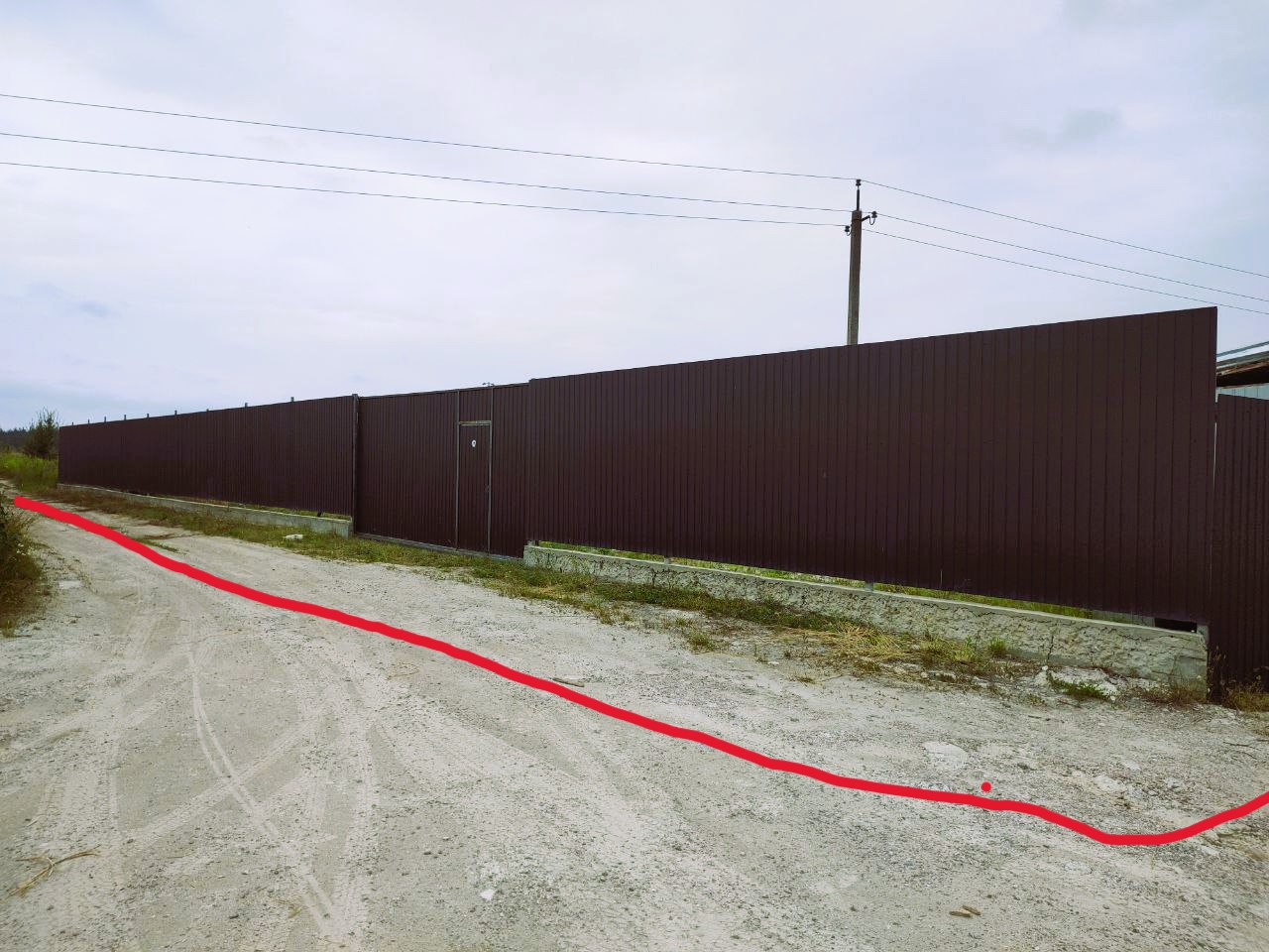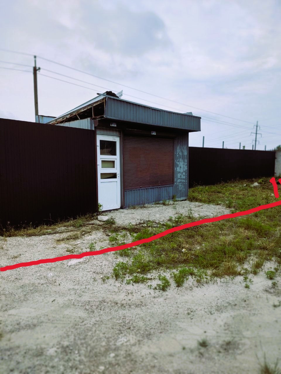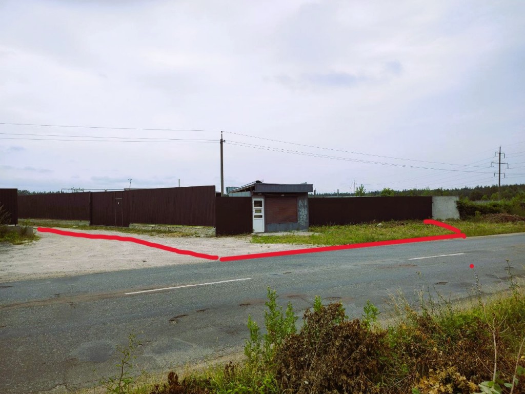 По периметру огорожена забором із профнастілу висотой 3м.Ворота відкриваються на 5 м для заїзду транспорту.