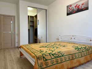 Квартира двостороння, розпланована на кухню-вітальню та дві окремі спальні. Є гардеробна. Встановлено лічильник на опалення. Виконано якісний ремонт, квартира укомплектована меблями та необхідною технікою.