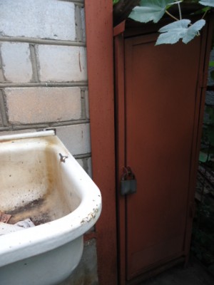 4.Санблока ,состоящего из туалета,душа и сарая(всё раздельно),с металлическим баком для воды на крыше