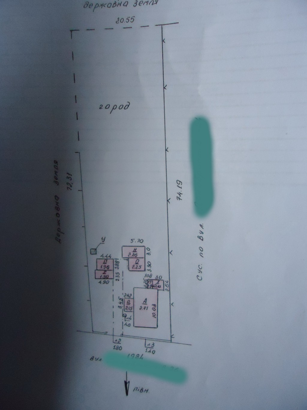 Участок фасадно угловой,находится в районе 5 этажек.