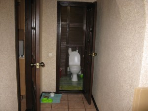 Розташована на 9 поверсі 16-ті поверхового керамзито-бетонного будинку. Серия Т-1.