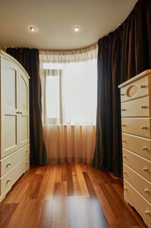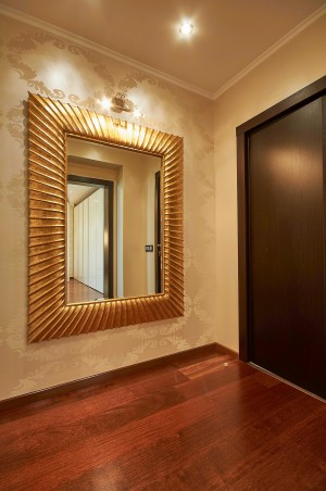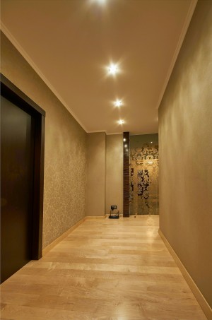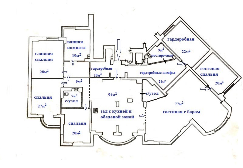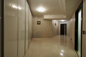 Значительную площадь квартиры (61м2) занимают несколько гардеробных комнат, технические комнаты с постирочной и кладовыми.