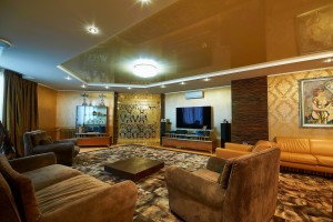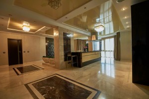 Интерьер наполнен итальянской мебелью топовых мировых брендов, есть потолочная акустика, подогрев полов и кондиционеры, сигнализация с датчиками движения и вибрации на стенах и окнах, защитная пленка на окнах. Все выполнено для комфортного и безопасного проживания.