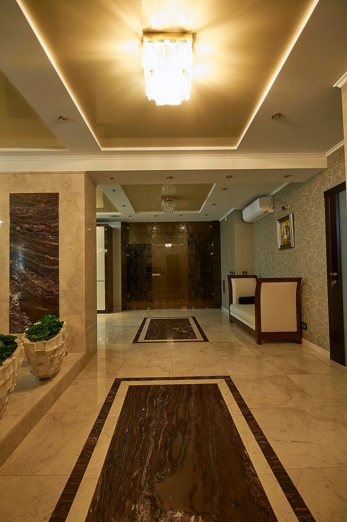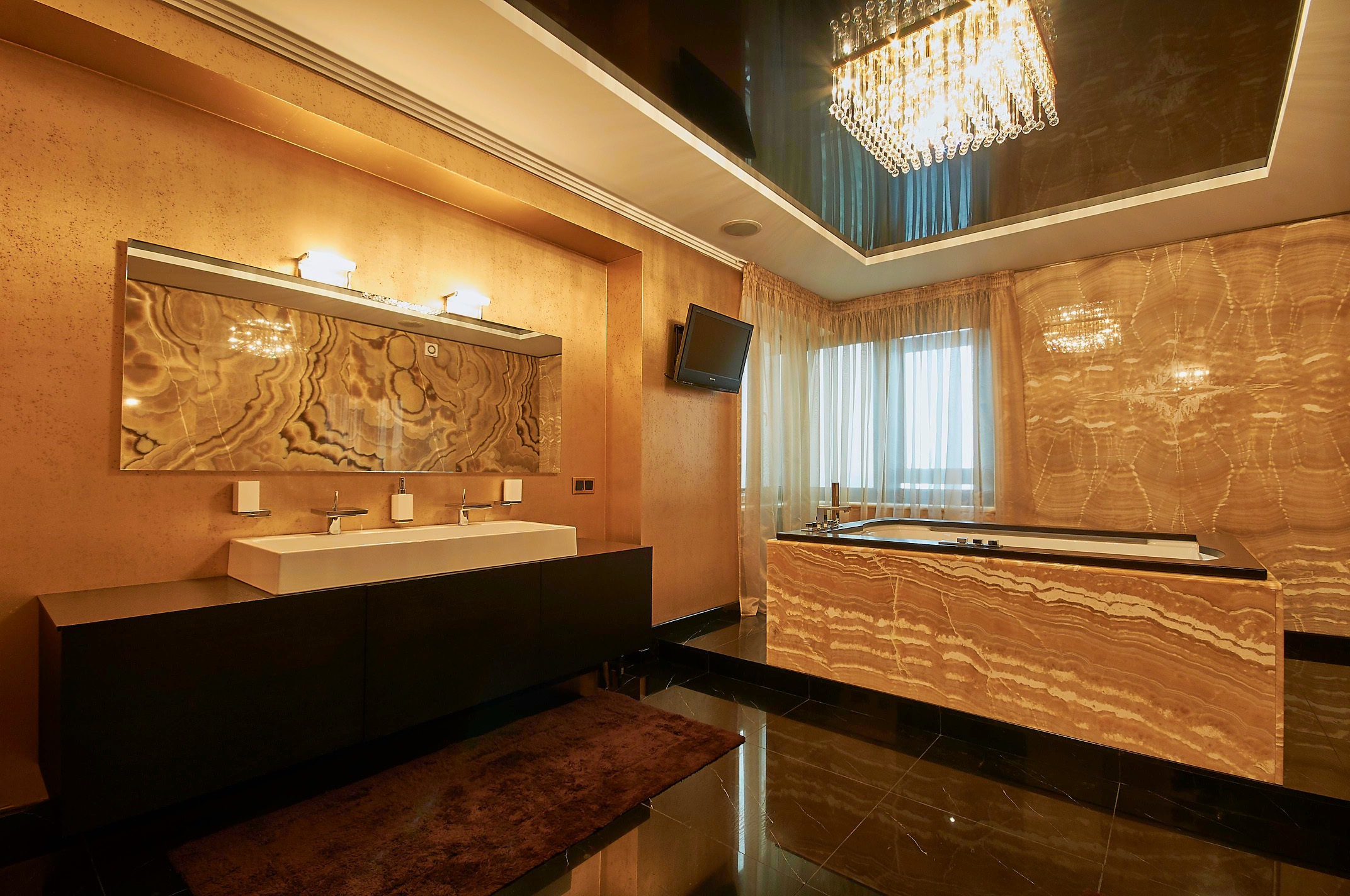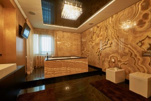 В отделке стен и пола использованы мрамор и оникс.