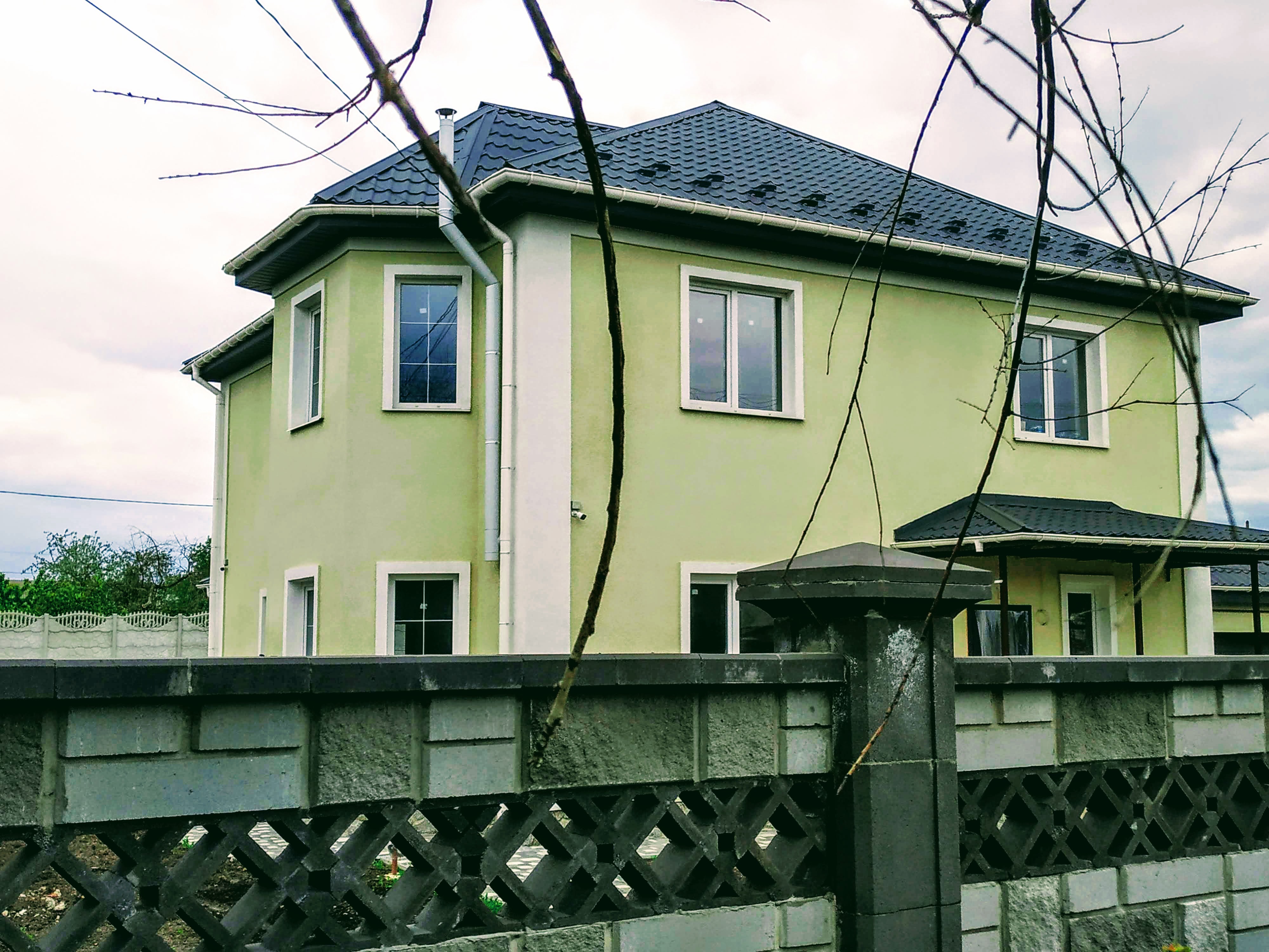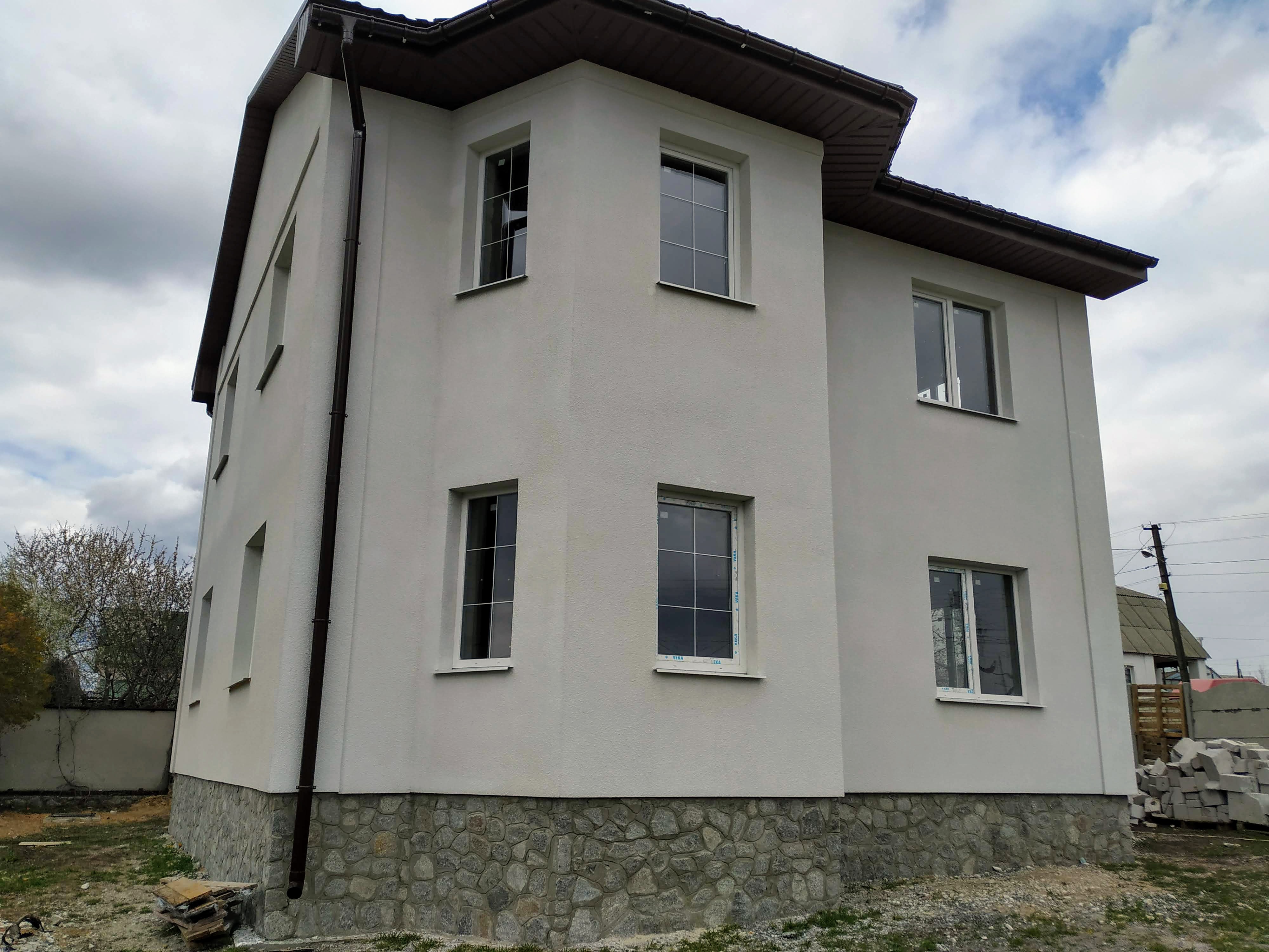 Состояние дома: под отделку с учетом ваших требований и безупречного вкуса. Конструкция здания стоит на армированном железобетонном ленточном фундаменте глубиной 1,30 м. Цоколь выполнен из силикатного кирпича и облицован бутовым камнем в замковом стиле. Стены дома из армированного газобетонного блока 375 мм UDK. Фасад утеплен минеральной ватой 50 мм и покрыт декоративной штукатуркой. За устойчивость и долговечность здания также отвечают два армопояса, которые выполнены на первом и втором этажах дома. Железобетонные перекрытия между этажами. Установлена металлическая лестница на второй этаж. Высота потолков – 3,0 м. Крыша изготовлена из высококачественной финской металлочерепицы RUUKKI. Все окна из передового профиля VEKA 70 мм с дорогой фурнитурой и трехкамерным энергосберегающим стеклопакетом. Входная дверь: металлическая двойная с утеплением, окрашена антикоррозионной эмалью.