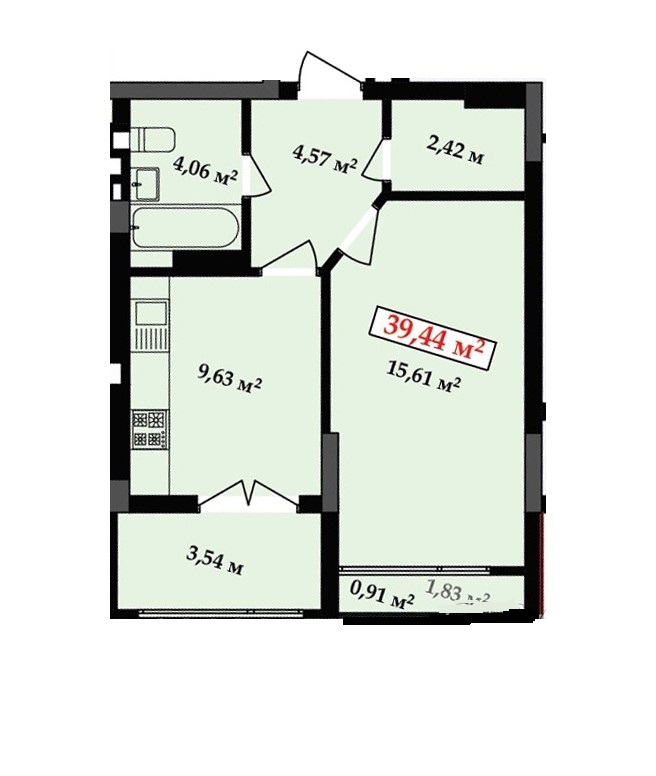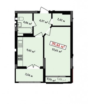 Загальна площа: 39.5 кв.м
